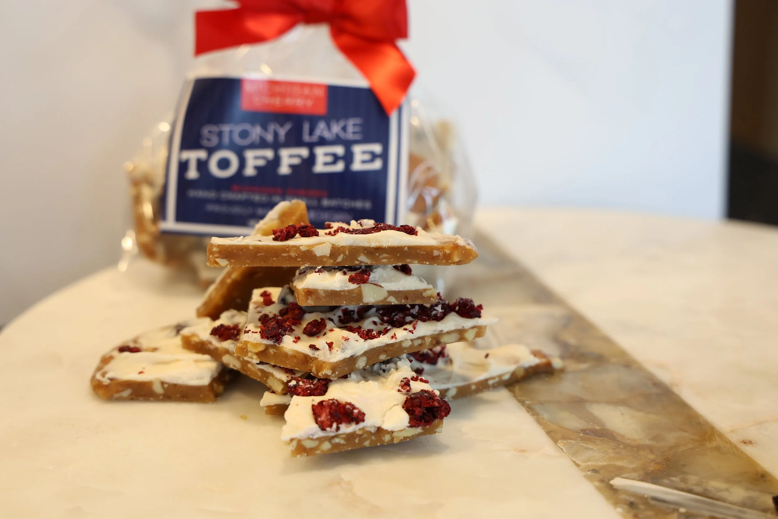 Cathy's Original Butterscotch Toffee from $12.00 Dark Chocolate Sea Salt Toffee from $17.00 White Chocolate Michigan Cherry Toffee from $17.00